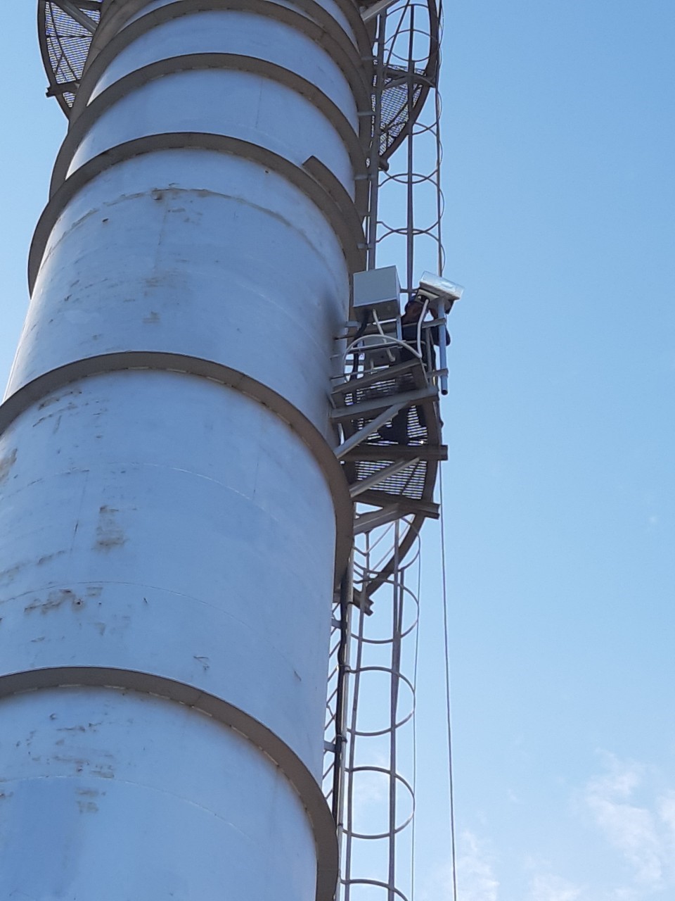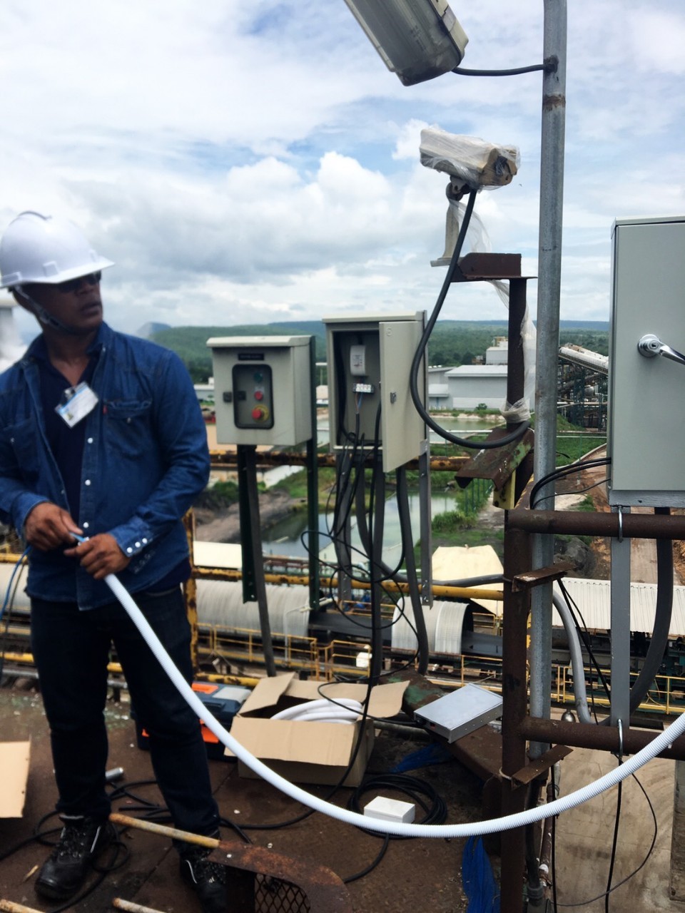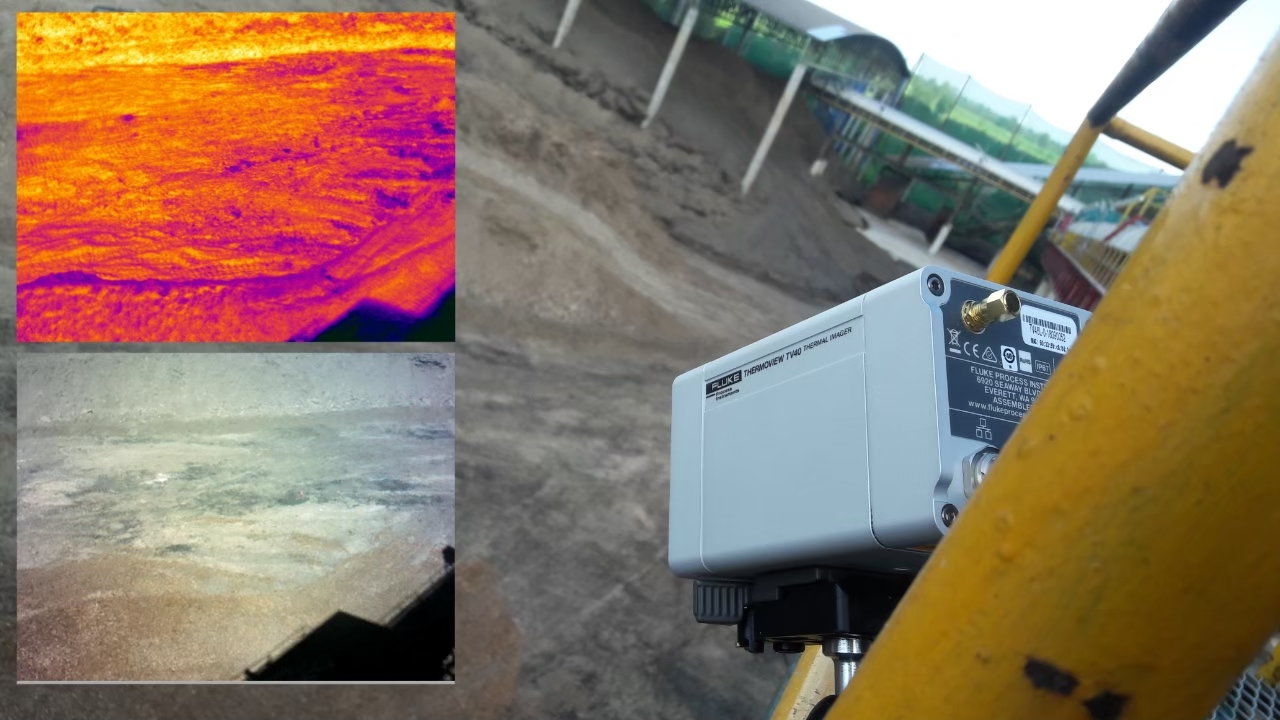 กล้องถ่ายภาพความร้อนแบบติดตั้ง Fluke Process InstrumentsTV43 เครื่องที่ช่วยเฝ้าระวังกองกากอ้อยของลูกค้าโรงน้ำตาล เพื่อป้องการเกิดไฟไหม้ของกองกากอ้อย เป็นระบบภาพถ่ายความร้อนและมีสัญญาณเตือนก่อนเกิดเหตุ